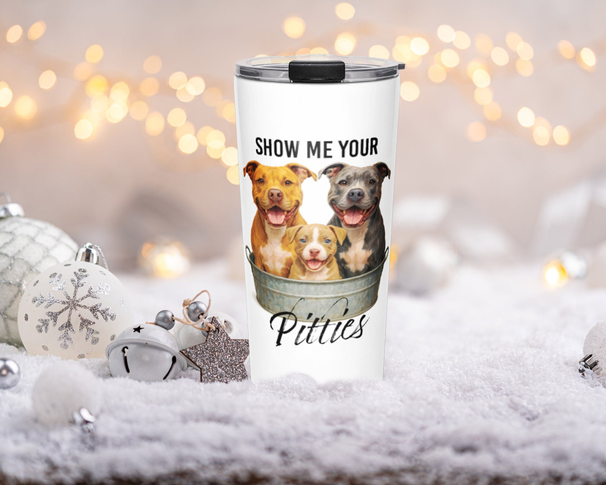 Stay sippin’ in style. Show your love for pitties with a splash of humor! 🛁❤️ This adorable “Show Me Your Pitties” design features three cute pitbulls sitting together in a washtub, ready to melt hearts and turn heads. Perfect for pitbull lovers, dog moms, and anyone who can’t resist a silly pun.